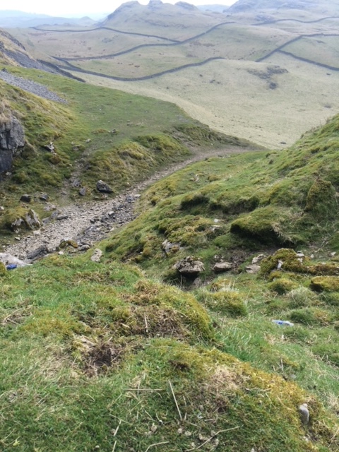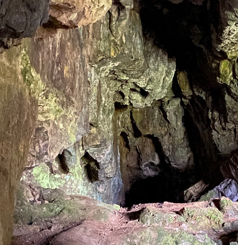 - The cave entrance. In 2035 this was difficult to see by anyone walking on the mountainside. It was part of a network of caves running through this part of Northern England that is mostly built on limestone rock.